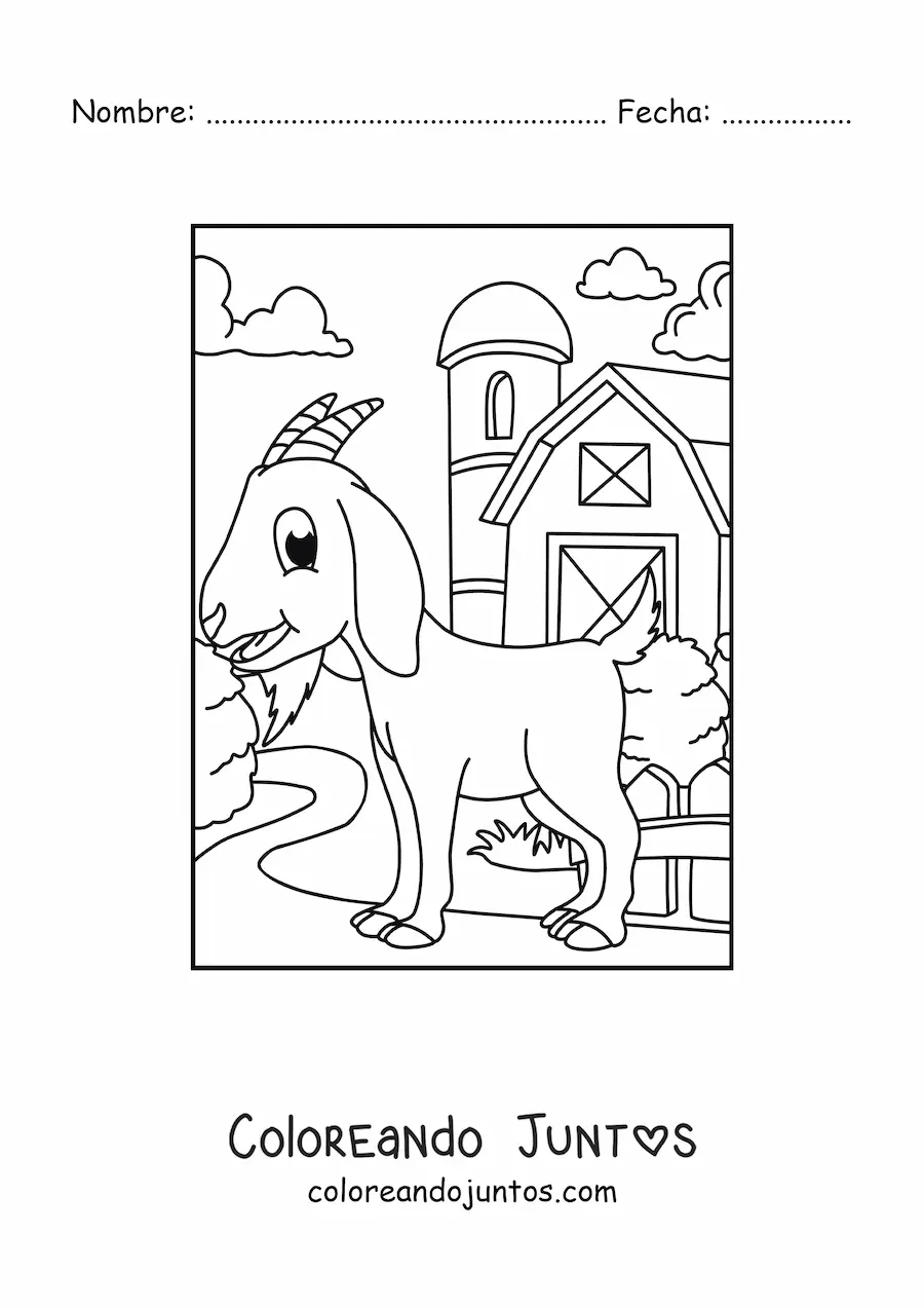 Imagen para colorear de una cabra animada en la granja